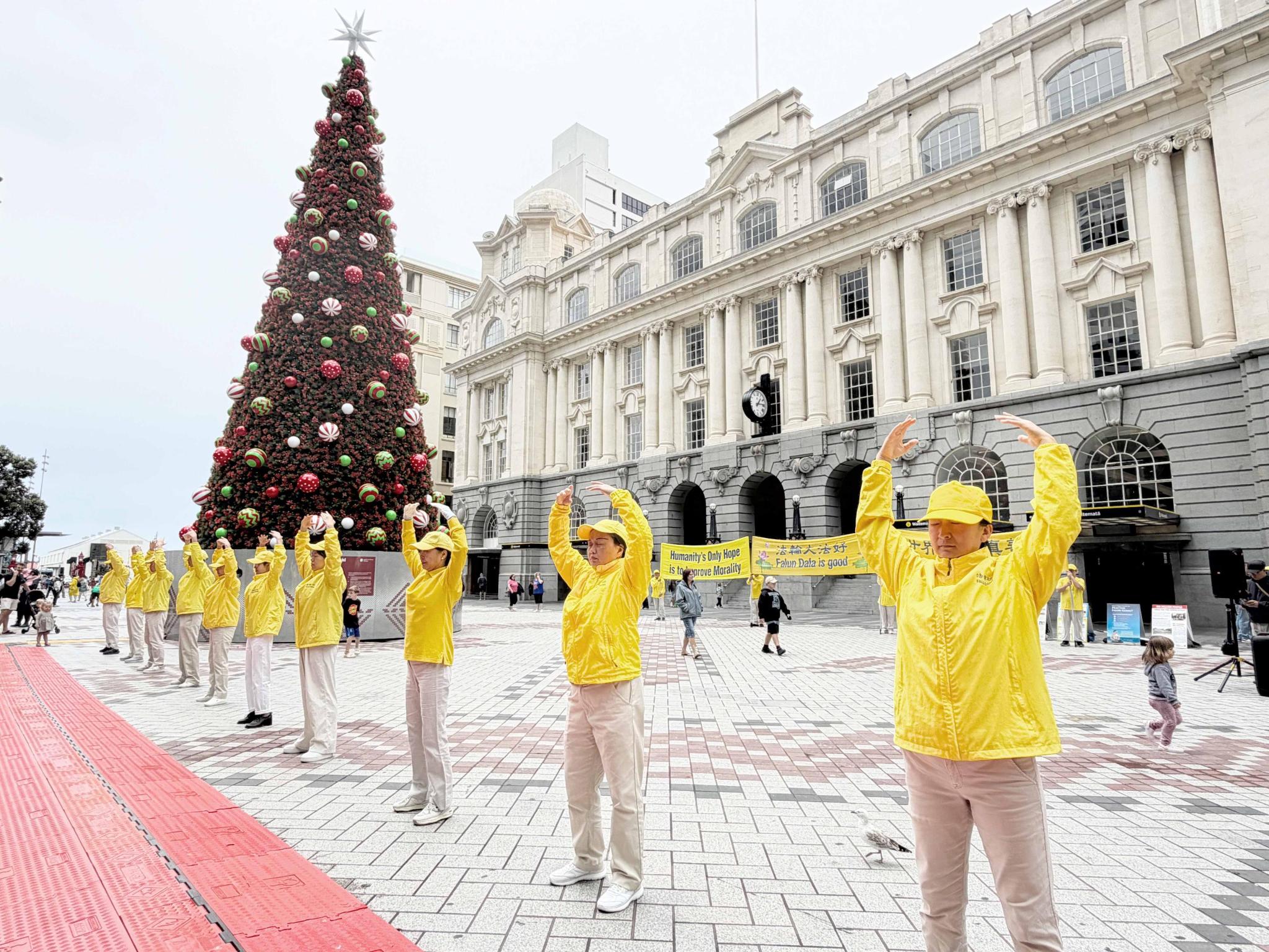 Falun Dafa (Falun Gong) praktikanti su proslavili dolazak Nove godine održavanjem aktivnosti u centru Aucklanda, Commercial Bay, 27. decembra 2025. godine. Demonstrirali su Falun Dafa vježbe i podučavali posmatrače. Također su održali skup na kome su informirali ljude o 26-godišnjem progonu u Kini. Advokat za ljudska prava Kerry Gore se obratio prisutnima, pohvalivši upornost praktikanata pozivajući ljude iz svih sfera života na Novom Zelandu da pomognu praktikantima da zaustave progon ove prakse od strane Komunističke partije Kine (KPK).